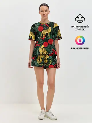 Детская пижама с брюками / Леопарды и цветы