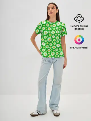 Детская пижама с брюками / Ромашки на зелёном фоне
