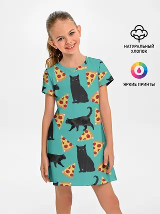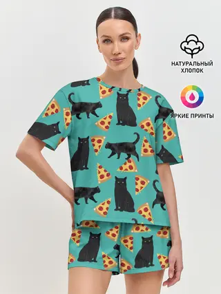 Детская пижама с брюками / Котики и Пиццы