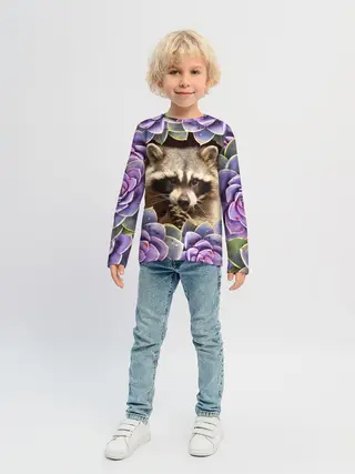 Детская пижама с брюками / Енот среди цветов