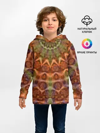 Детская пижама с брюками / Оранжево-оливковый калейдоскоп