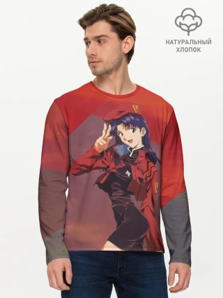 Мужской лонгслив базовый / Misato Katsuragi на красном