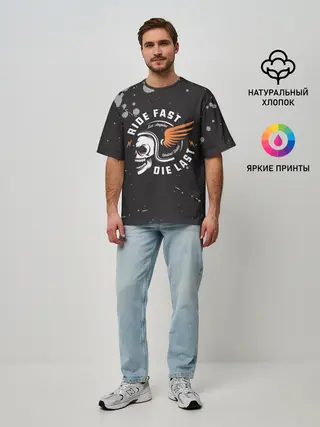 Мужская футболка оверсайз / RIDE FAST - DIE LAST | МОТО ЖИЗНЬ
