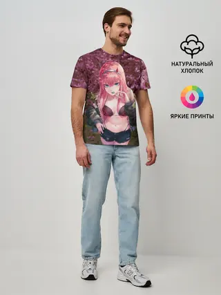 Мужская футболка оверсайз / Zero Two Сад сакуры