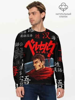 Мужской лонгслив базовый / Берсерк иероглифы паттерн