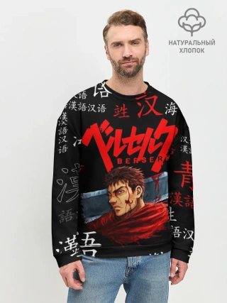 Мужской свитшот базовый / Берсерк иероглифы паттерн