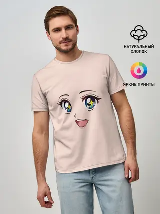 Мужская базовая футболка / милое аниме лицо