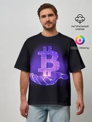 Мужская футболка оверсайз / BITCOIN IN HAND | БИТКОИН