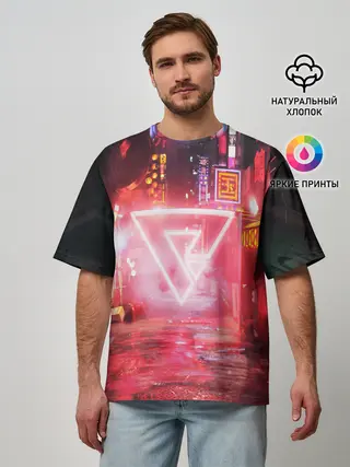 Мужская футболка оверсайз / КИБЕР НЕОН