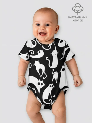 Детское боди / Белые коты на черном фоне