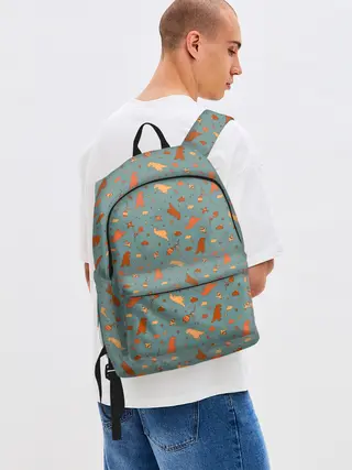 Рюкзак джинсовый / детский принт с динозаврами и звездами