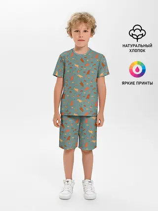 Детская пижама с шортами / детский принт с динозаврами и звездами