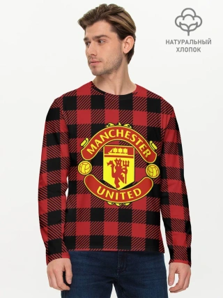 Мужской лонгслив базовый / Манчестер Юнайтед фон в клетку