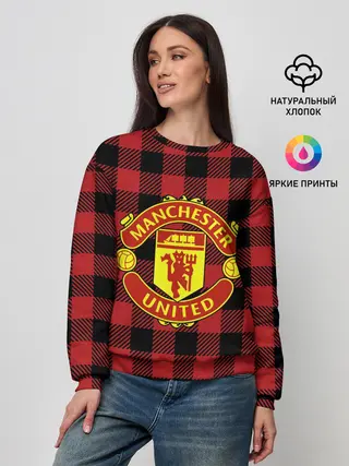 Женский свитшот / Манчестер Юнайтед фон в клетку
