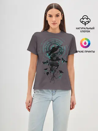 Женская футболка оверсайз / Черный ворон