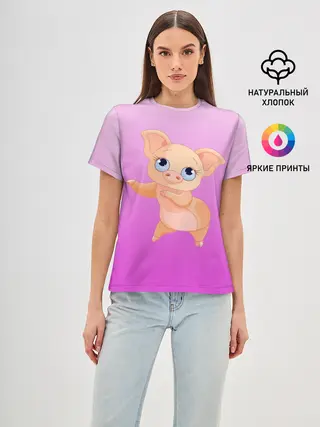 Женская базовая футболка / Танцующая свинка