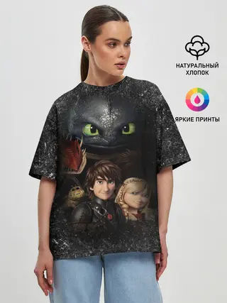 Женская футболка оверсайз / Беззубик и викинги