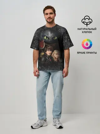 Мужская футболка оверсайз / Беззубик и викинги
