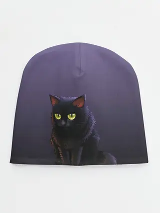 Мужская футболка оверсайз / черный кот на фиолетовом
