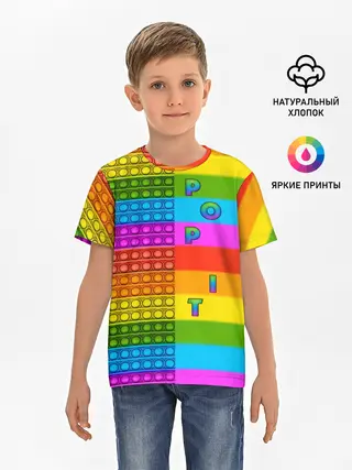 Мужская футболка оверсайз / POP it вертикальная надпись