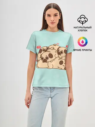Женская базовая футболка / Мопсы