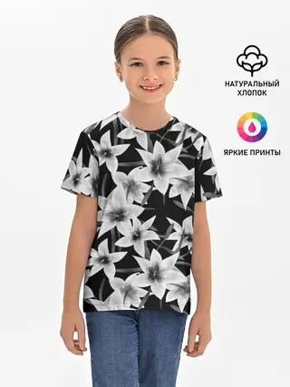 Детская базовая футболка / Лилии черно-белые