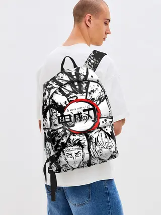 Рюкзак детский / Kimetsu no yaiba чернобелый коллаж