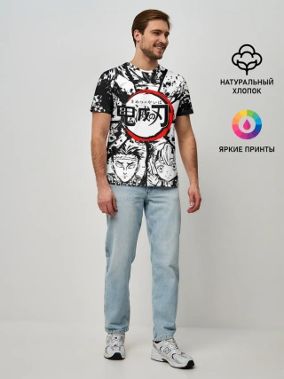 Мужская базовая футболка / Kimetsu no yaiba чернобелый коллаж