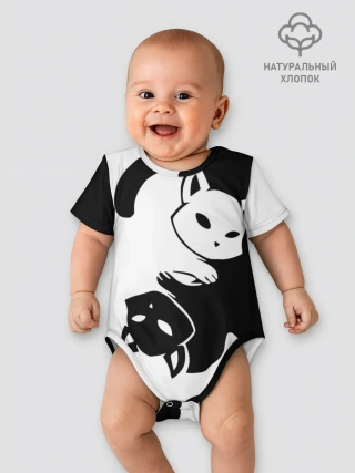Детская пижама с шортами / Черный и белый кот кувыркаются.
