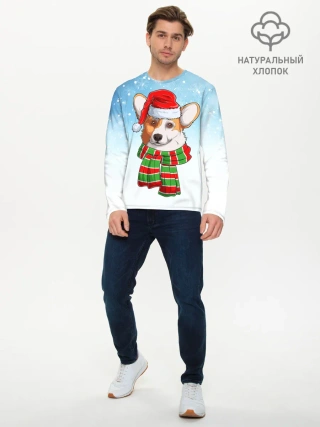 Мужской лонгслив базовый / Новогодний Корги / New Years Corgi