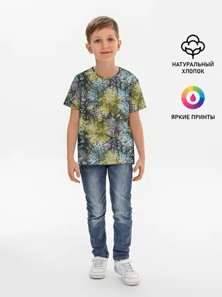 Детское платье / Черно оливковый цветочный