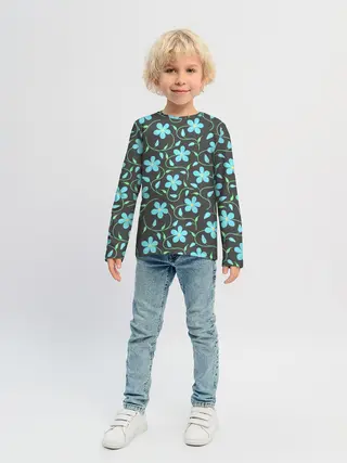 Детская пижама с брюками / Цветочный узор на темном фоне