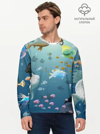 Мужской лонгслив базовый / Мультяшные рыбки | Пляжная