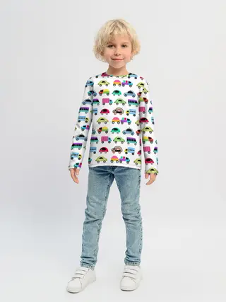 Взяли на размер побольше. На рост 129 платье 140. Цвета конечно не такие яркие как на фото, но все же смотриться хорошо