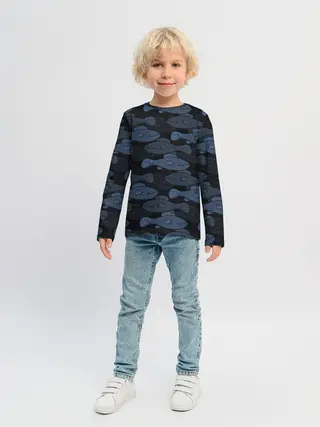 Детское платье / Синие рыбы на темном фоне