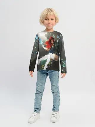 Взяли на размер побольше. На рост 129 платье 140. Цвета конечно не такие яркие как на фото, но все же смотриться хорошо