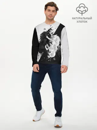 Мужской лонгслив базовый / ИНЬ ЯНЬ ВОЛКИ ЧЁРНО БЕЛЫЙ