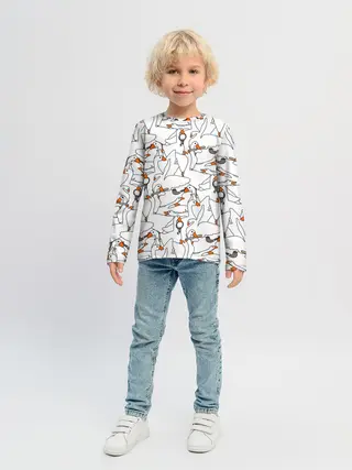 Взяли на размер побольше. На рост 129 платье 140. Цвета конечно не такие яркие как на фото, но все же смотриться хорошо