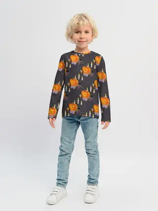 Детский лонгслив / Хэллоуин - тыквы и свечи