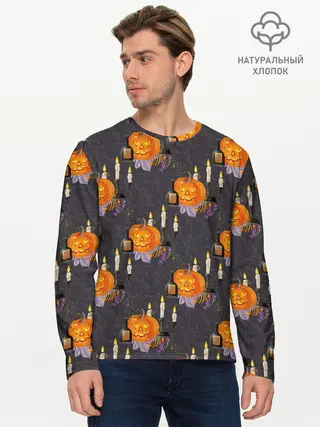 Мужской лонгслив базовый / Хэллоуин - тыквы и свечи