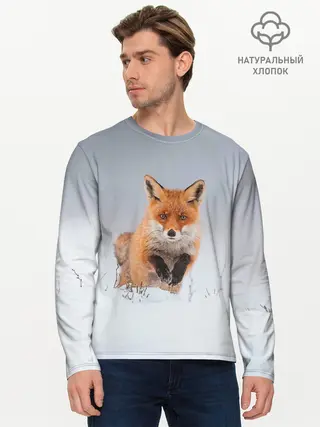 Мужской лонгслив базовый / Лисица прыгает по снегу