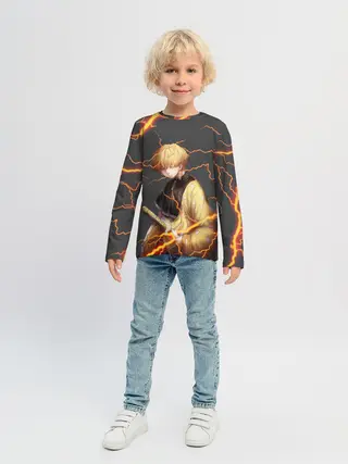 Детский лонгслив / KIMETSU NO YAIBA оранжевые молнии