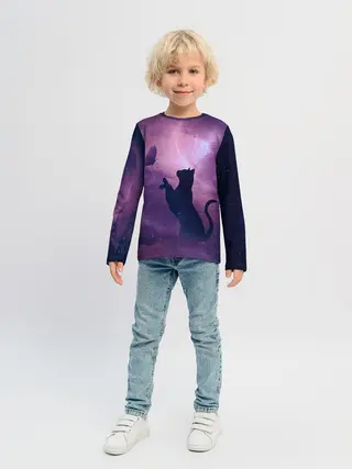 Детский лонгслив / Бабочка кот силуэт фиолетовый