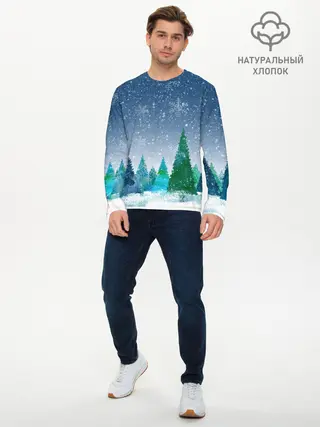 Мужской лонгслив базовый / Снежинки в лесу