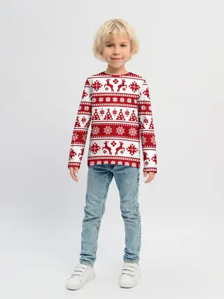 Детский лонгслив / Новый Год | Олени и снежинки