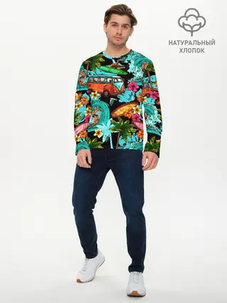 Мужской лонгслив базовый / Пальмы, волны, серфинг
