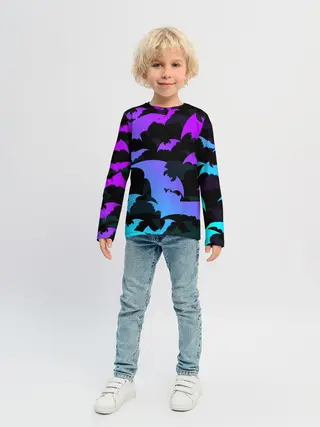 Детский лонгслив / ЛЕТУЧИЕ МЫШИ ХЕЛЛОУИН НЕОН / HALLOWEEN NEON