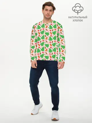 Мужской лонгслив базовый / Новогодние ёлки и подарки
