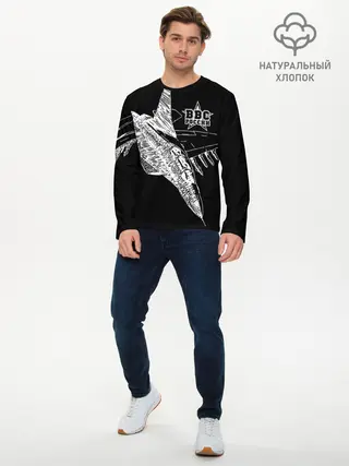 Мужской лонгслив базовый / Истребитель штрихом ВВС России