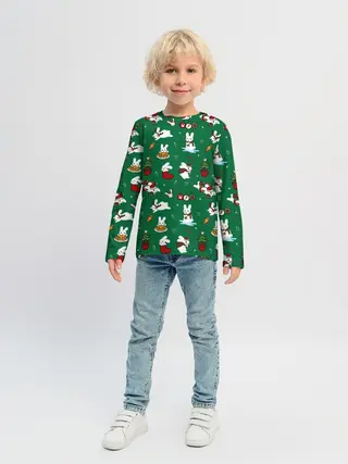 Детский лонгслив / Новогодний паттерн с зайчиками